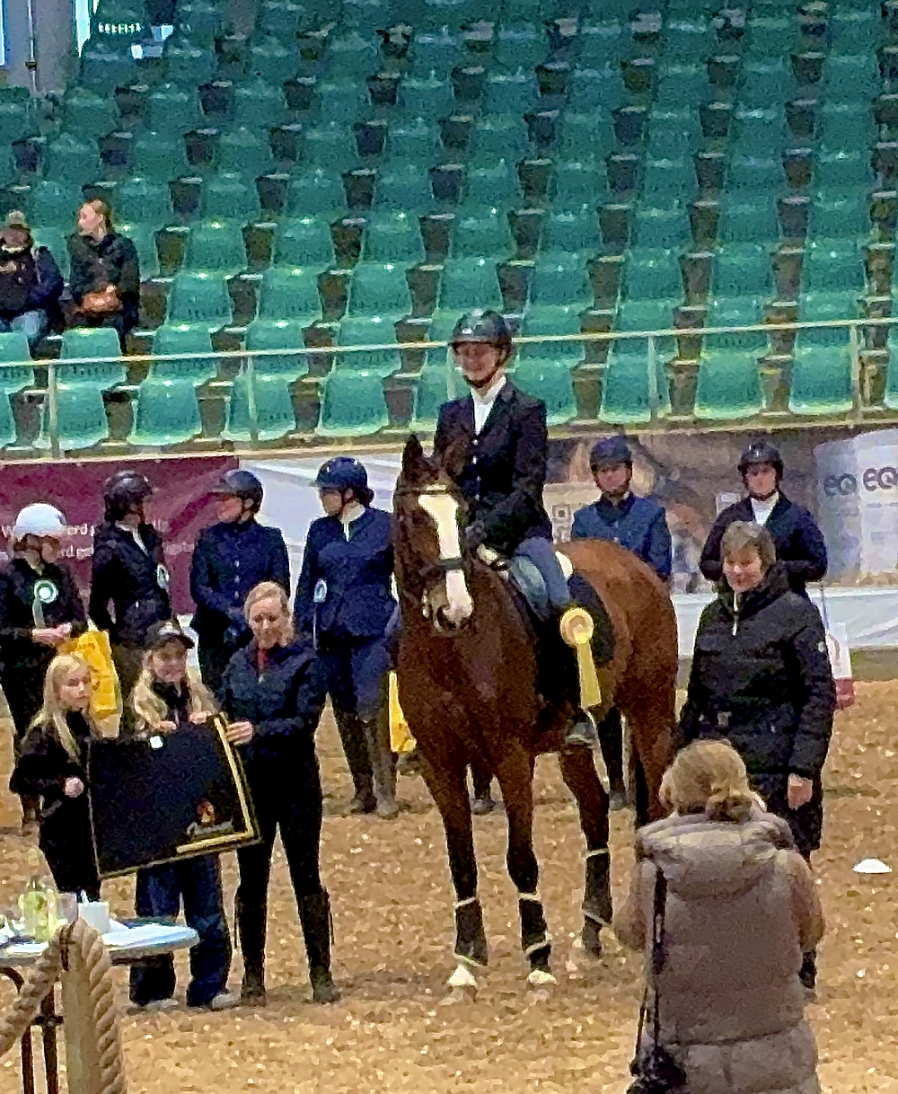ihrer Größe eine gewisse Geschmeidigkeit. Ihre Vorstellungen auf Dressurturnieren kam 2025 etwas zu kurz, da wir mit den anderen beiden Worker-Stuten besonders viel unterwegs waren. Darum hatte ich sie für eine Richterprüfung für die neuen Working-Equitation-Richter mitgenommen, um sie mal wieder auswärts zu reiten. Sie hat es dort so prima gemacht, dass wir sie kurzerhand beim Ostbayern-Cup nachgenannt haben. Und so folgte hier in 2025 der absolute Höhepunkt bei ihrem ersten Working-Equitation-Turnier Klasse A gewann sie an der Seite von Lucca völlig überraschend die Gesamtwertung, mit über 70 % in der Dressur. Für ein Erststart-Pferd, in großer Arena und mit einer neuen Reiterin, war das ein bemerkenswerter Erfolg.