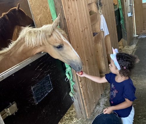 die Wirkung vom frischem Gras im Frühjahr.Sommer 2025 ja und das Gras wirkt Wunder, sie ist nun ein Riese! mit 1,5 Jahren hat sie ihren 1 Jahr älteren Bruder Teneree schon eingeholt. Umani wurde von bester Fotografin Silvia Stoib nochmal perfekt unter die Linse genommen und nach stundenlanger Einflechtarbeit - die Mähne ist echt mega lang und voll dick - sah sie auch recht zivilisiert aus. 2024