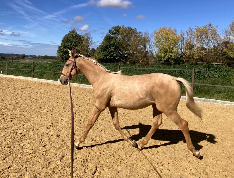 Lusitanostute Apsl palomino bei Geburt 100 cm 3-24 April 2024 112 cm August 2024 135 cm August 2025 160 cm! Abstammung Umani Genetischer Fortschritt Umani Abstammung Mutter Oxeana (auf dieser HP) Abstammung Vater Miura de Cais Cremello 1.67 cm Körnote 77.8 Punkte (Schritt und Galopp 8.0, Trab 9.0!) Video Umani 6 Monate alt (9-2024)