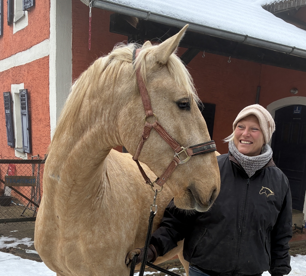 Teneree, unser Junghengst, erfüllt einen lange gehegten Zuchtwunsch: ein Palomino, groß, elegant, ohne Abzeichen und mit ausdrucksstarken Bewegungen und korrekt gebaut. Sein Name leitet sich von der Wüste Teneré ab, da seine Fellfarbe an den warmen Wüstensand erinnert. Er wurde 2023 problemlos bei uns geboren und entwickelt sich seitdem zu einem äußerst vielversprechenden Nachwuchshengst mit ausgeglichenem Wesen und hoher Lernbereitschaft. Tenerees Mutter, Oxeana, (India do Cisne, Morango, Xinfrim) ist eine agile und ausdrucksstarke Fuchsstute, die durch das Muttersein an Souveränität gewonnen hat. Sie beeindruckte stets Besucher mit ihrem Erscheinungsbild und vererbt Typ und Präsenz. Der Vater Miura de Cais (Riopele, Hostil, Carrico) ein großrahmiger Cremello-Hengst (168 cm), ist ein mehrfach prämierter Lusitano und trägt den Titel Recommended Stallion der APSL, ist also besonders zur Zucht empfohlen. Er wurde über Jahre konstant mit Gold- und Silbermedaillen ausgezeichnet, erreichte in der portugiesischen Körung 77,75 Punkte und besitzt über 150 eingetragene Nachkommen. Ausgebildet von Nuno Chaves de Almeida und später von Vasco Mira Gordino nun bei Albergeria Dressage weiter gefördert, wird er auf St.-Georg-Niveau vorgestellt. Die Kombination aus Oxeanas Temprament und Miuras Qualtiät erfüllte das Ziel, einen hochwertigen, korrekten Lusitano mit Qualität in Typ und hervorragenden Bewegung zu züchten. Entwicklung 2023–2025Bereits als Fohlen zeigte Teneree korrektes Exterieur, freundliches eher schüchternes Wesen und frühe Kooperationsbereitschaft. Grundausbildung wie Führen, Hufe geben und erste Hängerfahrten meisterte er souverän. Im Freilauf und auf den Koppeln zeigte er erste Anzeichen von Kadenz mit schönem Ausdruck. Mit dem Wechsel in die Junghengstherde entwickelte er Sozialkompetenz, integrierte sich gut und wurde zunehmend sicherer. Hier gab es erste Trainingseinheiten, sie umfassten Longieren, Bodenarbeit, Cavalettis, Trail-Elemente und Umweltsicherheit, wir konnten eine sehr schöne Bindung aufbauen. Auf dem Lusitano-Festival 2024 bestätigte er seine Qualität eindrucksvoll: Er erhielt eine Silbermedaille, wurde auf Platz 1 der Zuchtschau gesetzt, beeindruckte Fachpublikum wie Zuschauer und wir wurden mit Komplimenten überschüttet. Damit unterstrich er sein Potenzial als möglicher zukünftiger Deckhengst. Im Dezember 2025 kehrte Teneree aus der Hengstaufzucht zurück, weiterhin freundlich, verspielt, noch etwas ungeduldig aber unkompliziert im Umgang. Er nahm die zuvor erlernten Übungen sofort wieder auf und zeigte sich hoch motiviert für regelmäßige "Arbeit". Gesundheit Ein umfassender tierärztlicher Check (Dez 2025) inklusive Blutbild, Gebiss- und Zahnuntersuchung, Augen, Rücken, Hoden, Gliedmaßen sowie unzählige Röntgenaufnahmen (keine Gelenkchips!) bestätigte seinen hervorragenden allgemeinen Gesundheitszustand – ein wichtiger Schritt für die weitere züchterische Planung und in meinem Verständnis auch Vorraussetzung für eine Körung. Zucht- und AusbildungspläneFür das Frühjahr 2026 ist eine deutsche Körung vorgesehen; langfristig ist eine Vorbereitung in Portugal und eine spätere Vorstellung zur APSL-Körung - wohl Januar 2027 - geplant, sobald Teneree geritten und voll entwickelt ist. Somit stellt sich zwar die Frage der praktischen Einsetzbarkeit als Deckhengst bei uns, gleichzeitig erhöhen seine Qualität, sein Exterieur und seine bisherigen Erfolge die Chancen auf eine Zukunft in der Zucht. Liebling